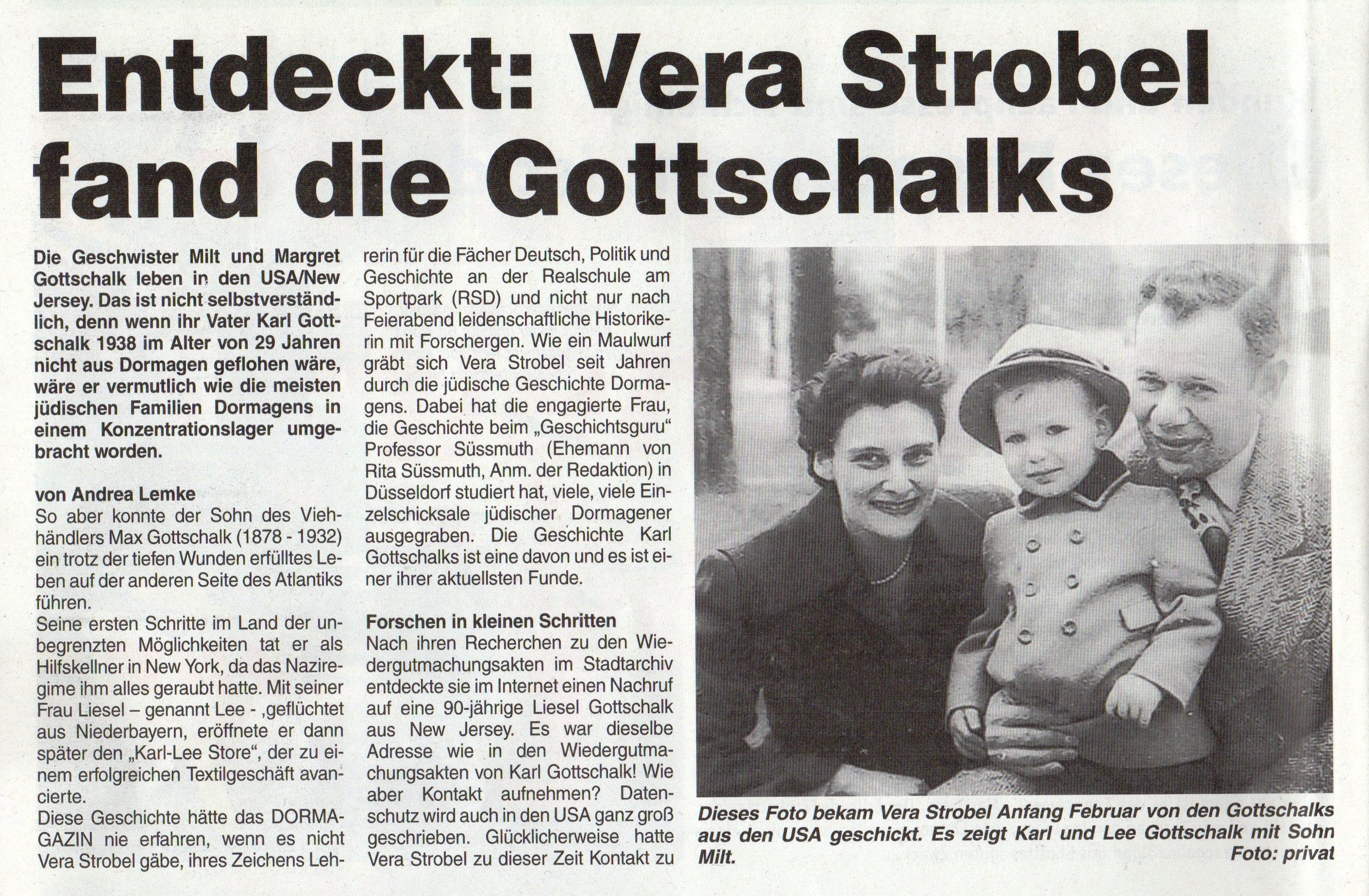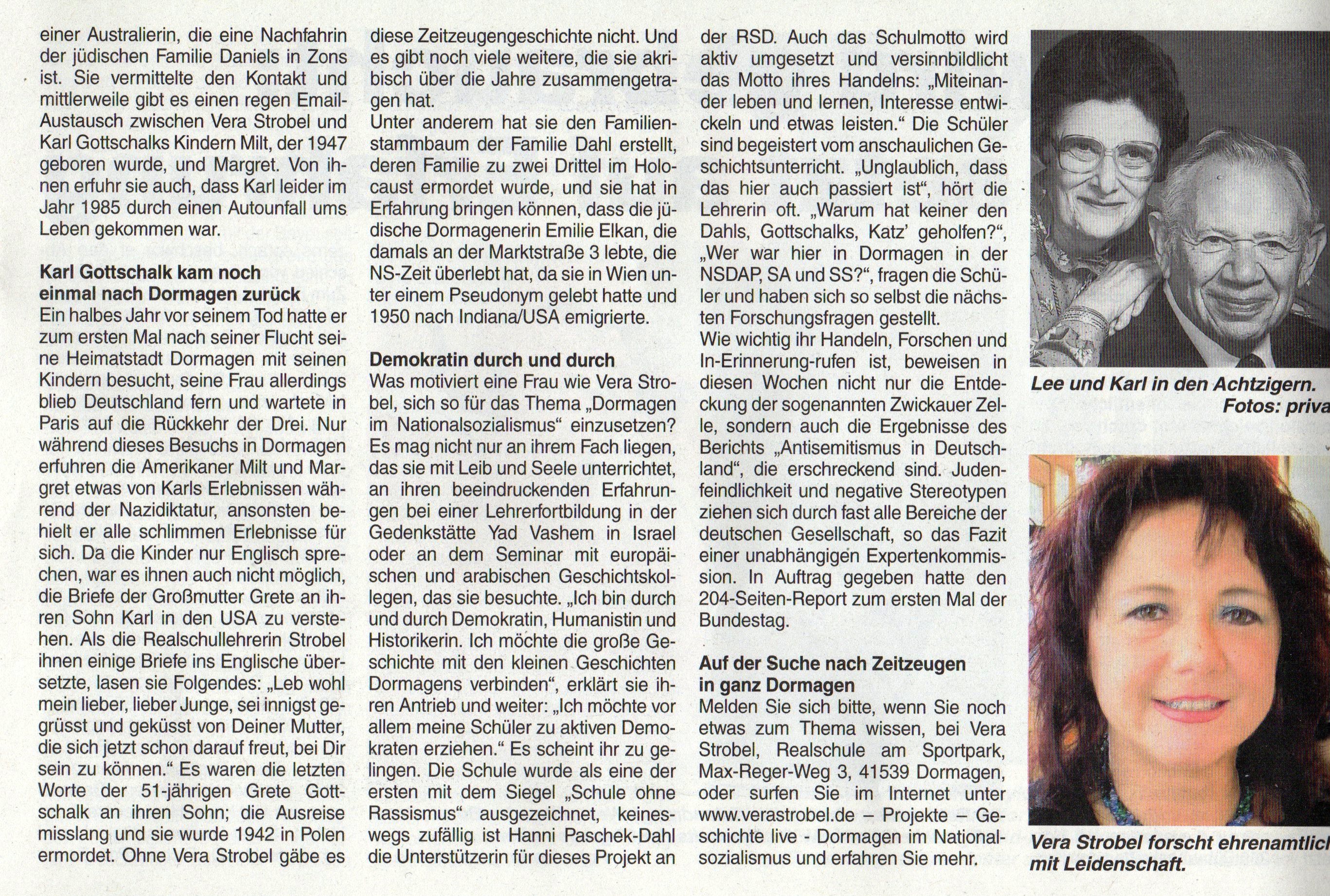 Der Zeitungsartikel wurde mit freundlicher Genehmigung des - "Schaufensters" (Dormagazin Feb. 2012) - zur Verfügung gestellt.