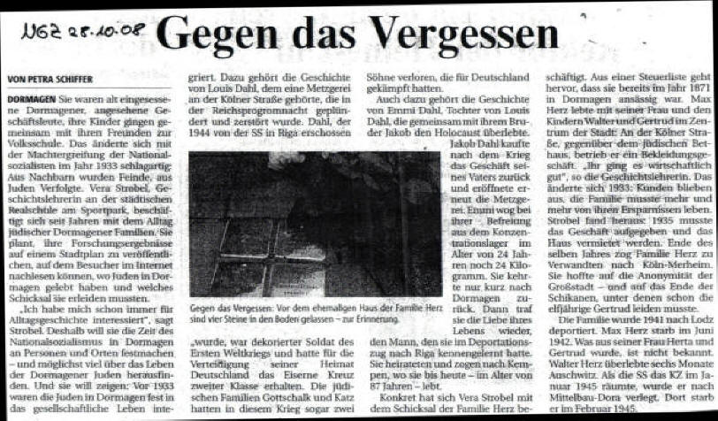 NGZ 28.10.2008 „Gegen das Vergessen“